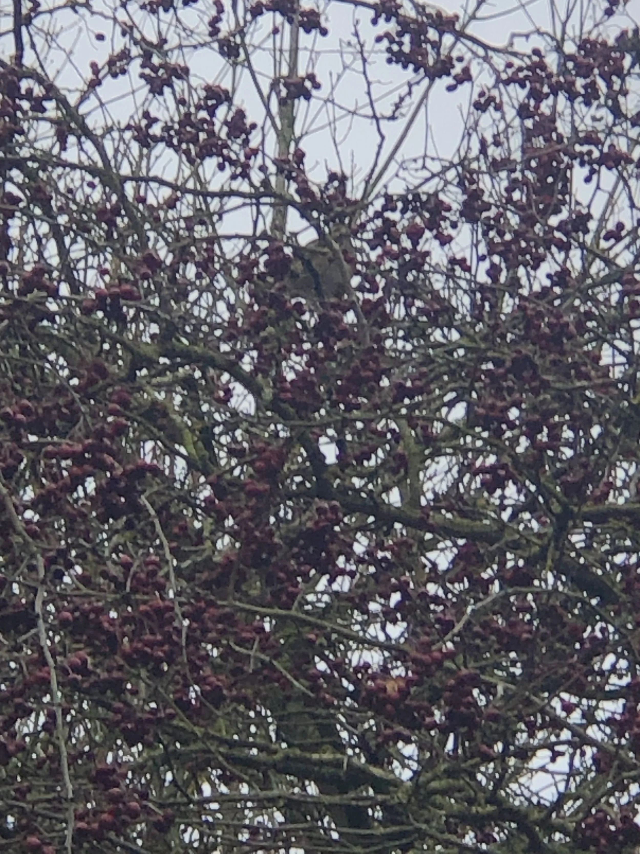 Today Clare noticed a different fungus while clearing, sawing and stacking Ash branches. This one is possibly Barnacle lichen, although she is unsure about the identification. Relaxing in the hide after the work, Clare counted twelve Goldfinches - the most seen together at the hide in a very long while and seven managed to use the nyjer seed feeders at the same time. Clare was delighted that a flock of Fieldfares and Redwings came briefly into the Hawthorn in front of the hide. They didn’t stay long however one Redwing perched for long enough for Clare to attempt a photograph. While the bird was easy to see with the naked eye, Clare found it much harder to locate it using her phone camera.