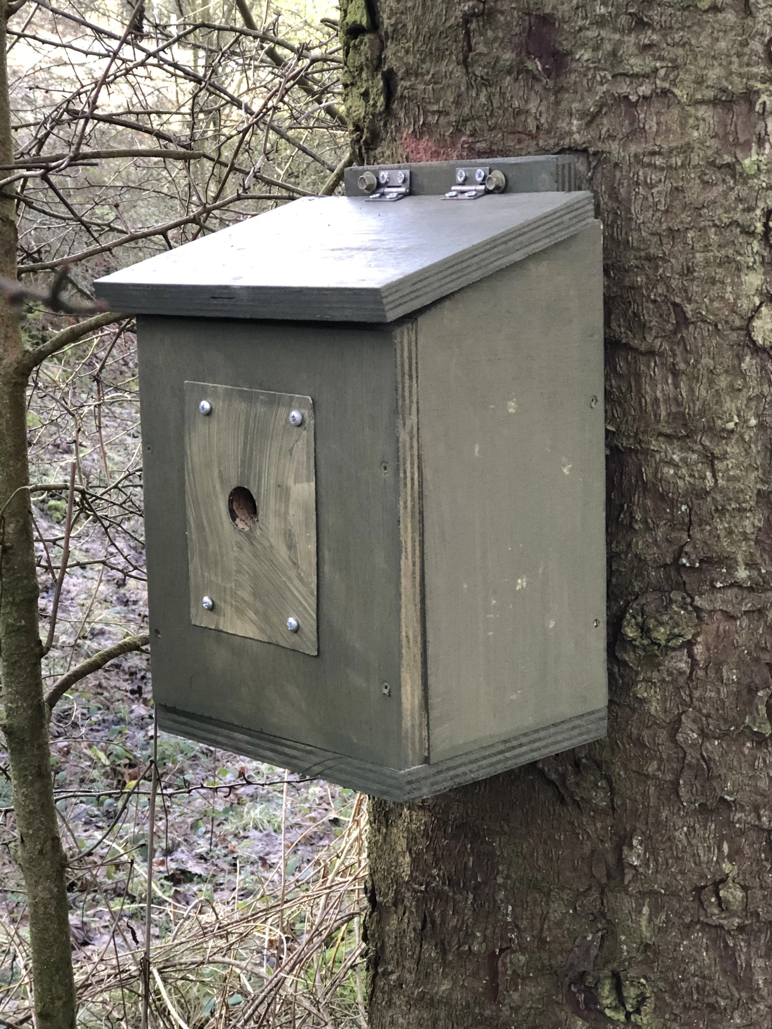 The rain stopped for St Valentine’s Day so John and Clare were able to follow tradition and put up a nesting box. This one is number 46 and is now in place near the Dirty Dancing Bridge in the Pit Wood. Clare was reminded that St Valentine is the patron saint of beekeepers and prompted her to decide to return to beekeeping this year after the loss of her colonies last year.