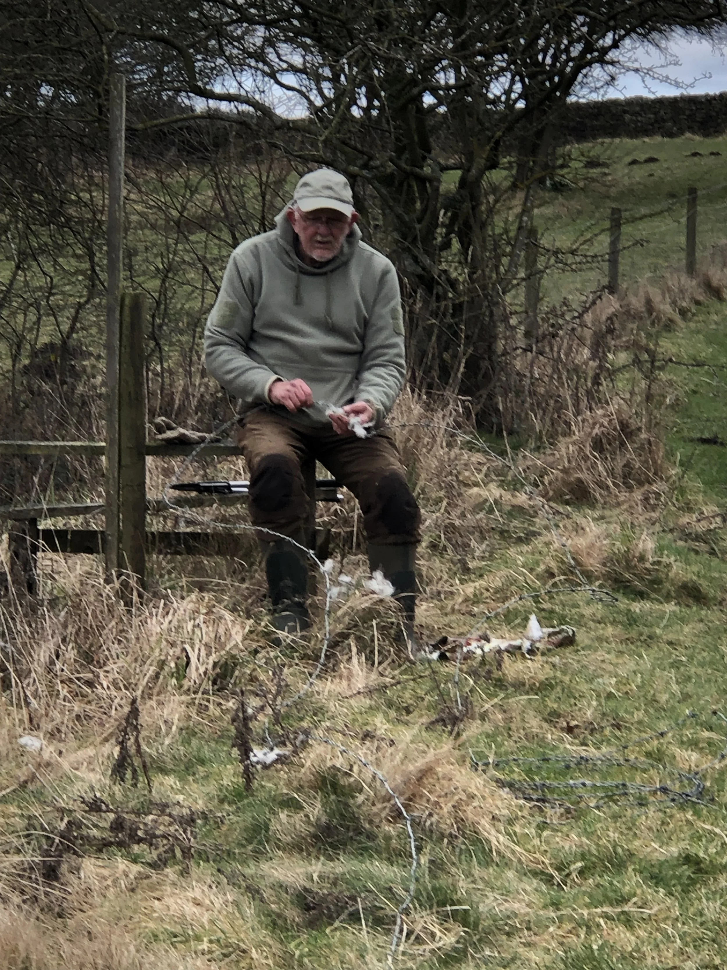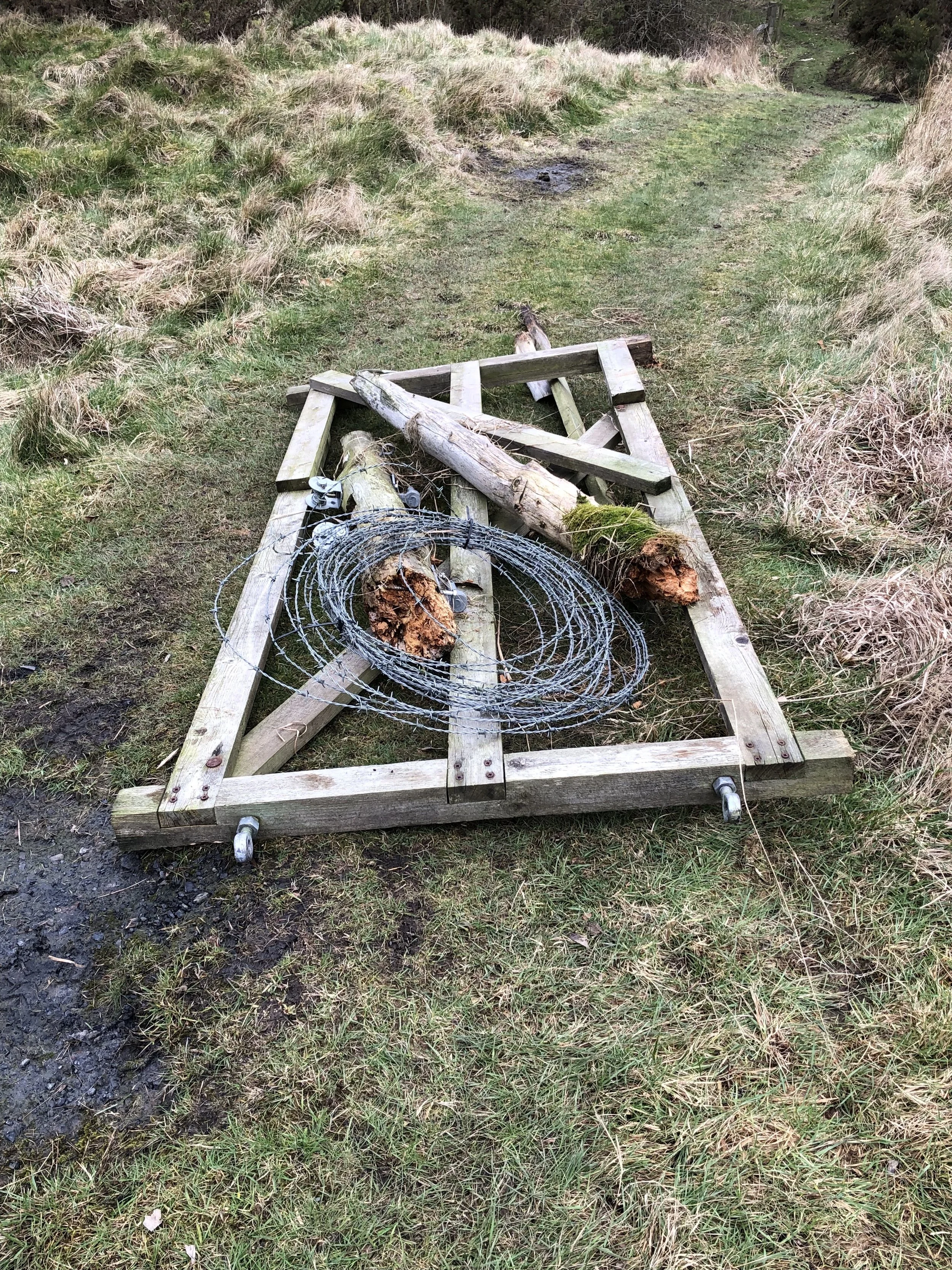 John put in more work taking down the now redundant fence (this included a spell of wool gathering); Clare helped remove one of the cages from the Spindle Trees and replaced it with her own version of protection.