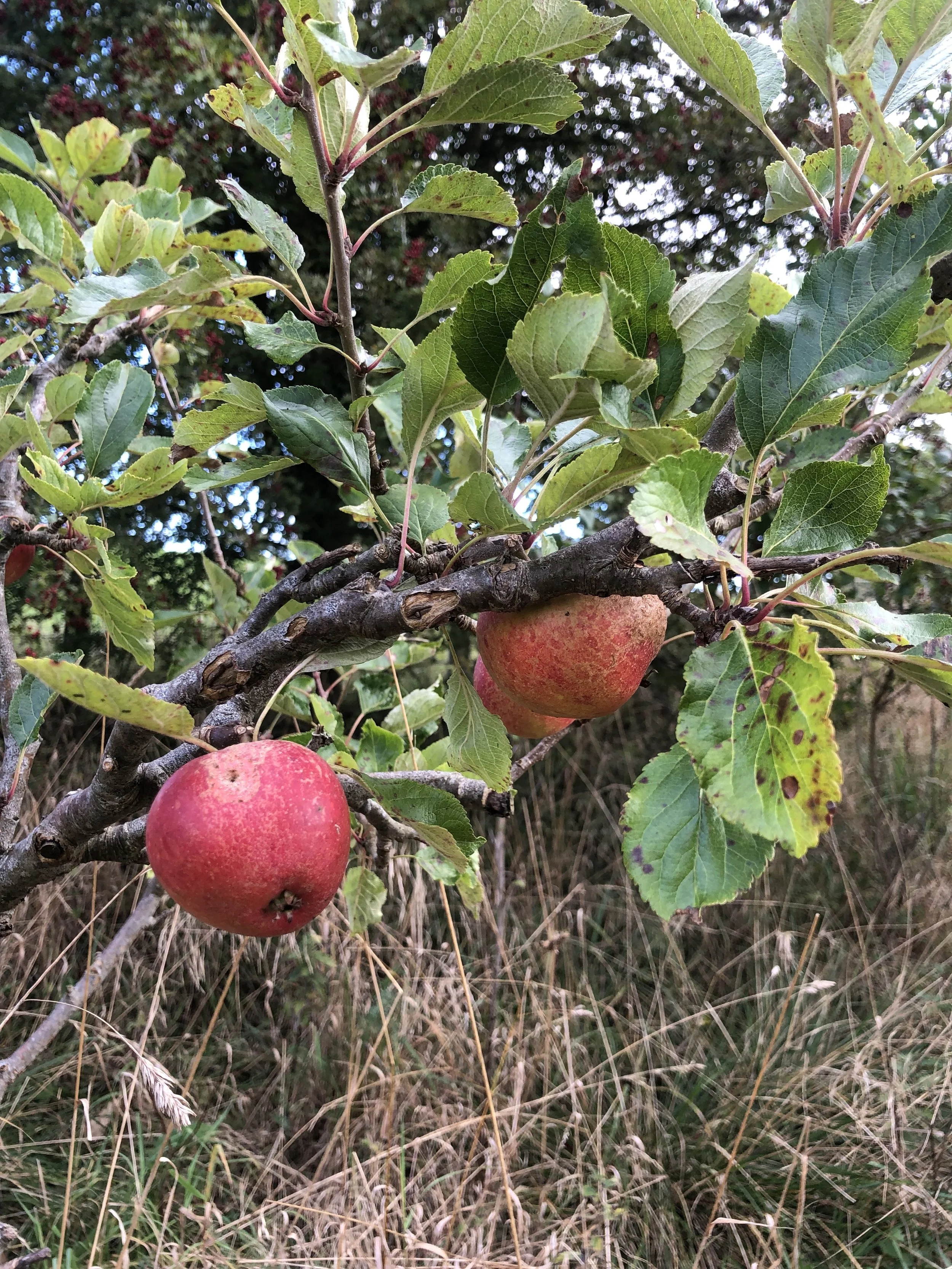 John has completed the fastenings on the new gate ready for the sheep. He discovered the apples in the Orchard had ripened. This is the first fruit from the earliest fruit tree planting several years ago.