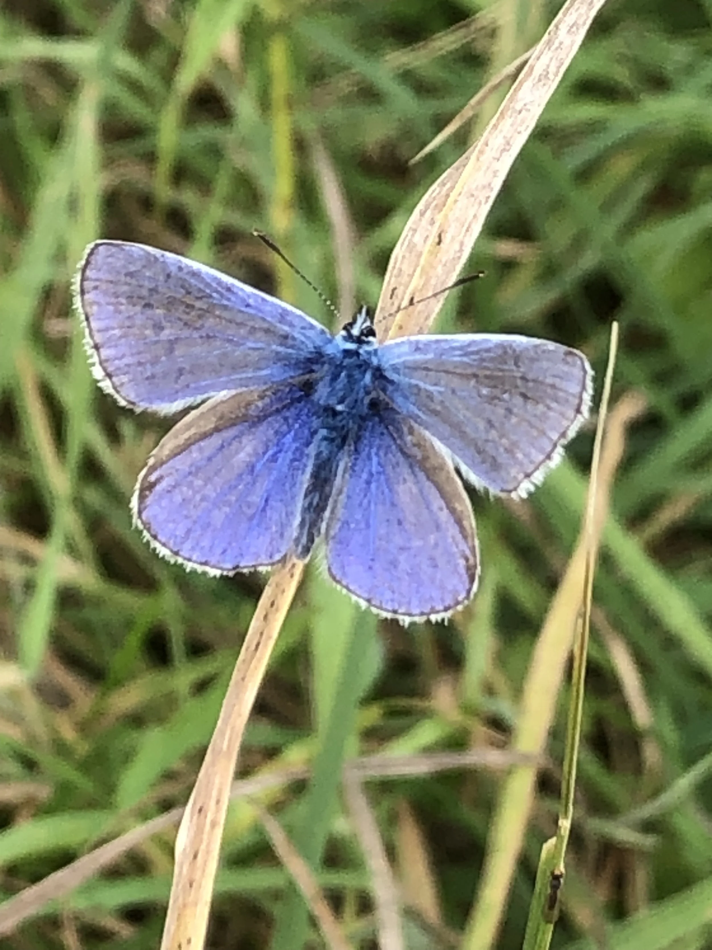 A postscript to August. Clare shared the photo of the Common Blue butterfly she had seen by Pond Maggiore at the end of the month with Tim. His response was, ‘Your fine photo shows pale blue spots on the outer edge of the wings between the veins. My literature does not describe this, it must be a Liddells subspecies.’ Here it is again so you can see the spots which Tim noticed. Polyommatus icarus Liddellus maybe?