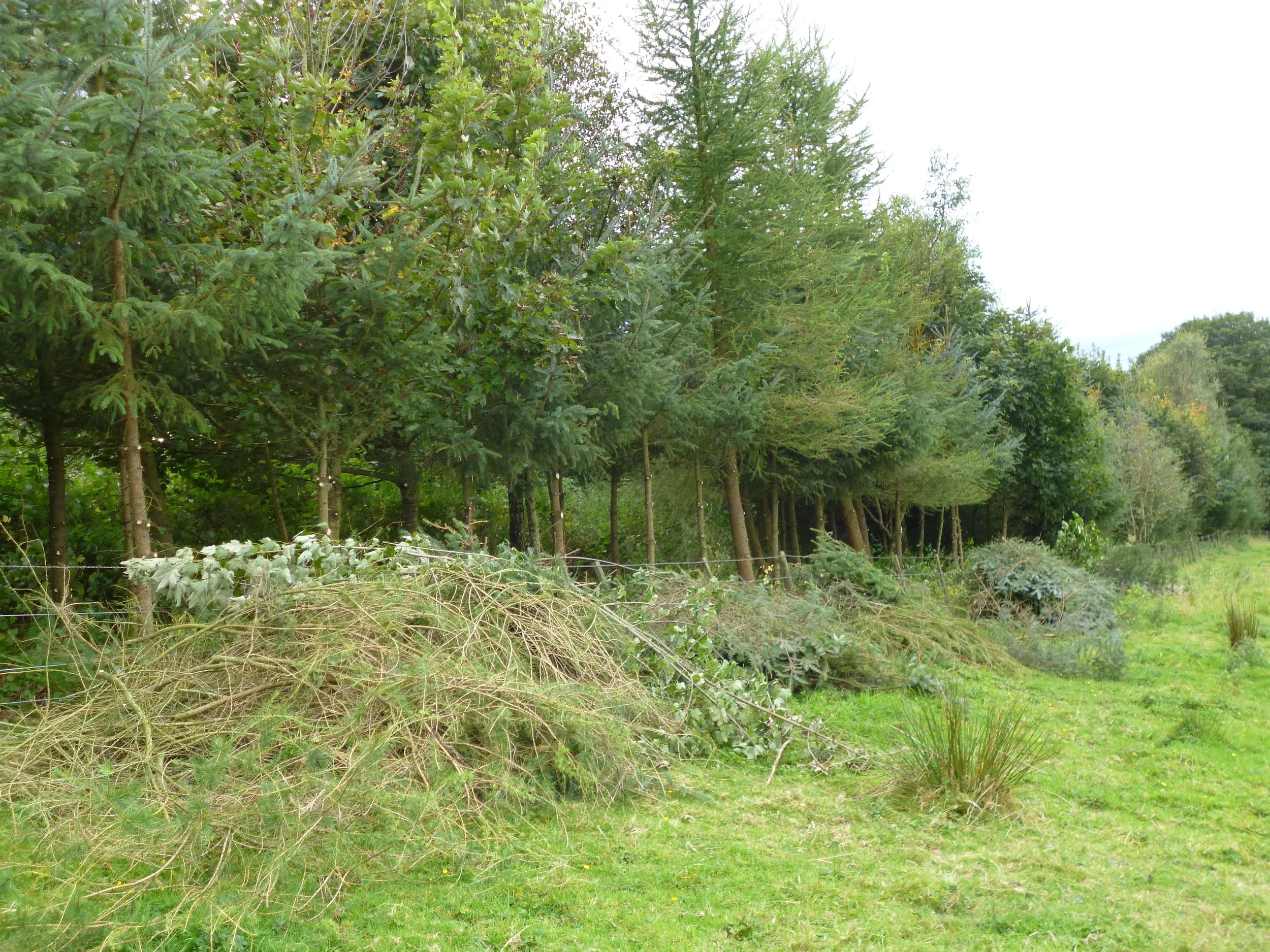 Reeling slightly from singing in the sunrise with her local choir, Clare set about freeing trees in the Top Strip from ragged tubes. She found a spider on one of the trunks inside the tube. The app Picture Insect identified it as an Old World Dome Sheetweaver Neriene montana. It belongs to the family Linyphiidae, commonly called Money spiders. They are known for their sheet- or hammock-like webs, building them among bushes or low vegetation, on tree trunks, or under logs, which they rest beneath. Clare protected the freed trunks with gorse cuttings, tying them on with brambles.