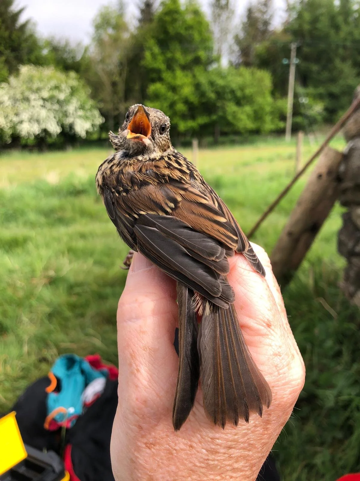 Ruth went round the nest boxes as part of her ringing session. She noted that two clutches of chicks had been predated and the nests were empty. The next day she said the first of the juveniles were appearing in her mist nets. The birds she ringed included a second male Whitethroat and a Sparrowhawk. She sent the images below.